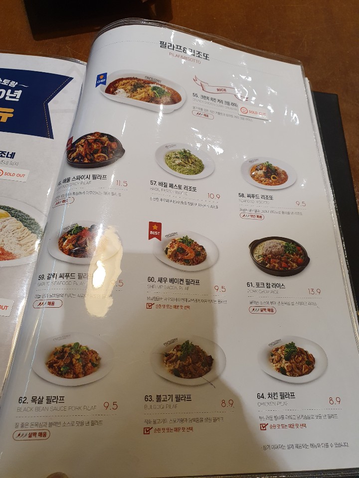 피자, 치킨, 스테이크, 필라프 등이 있기에