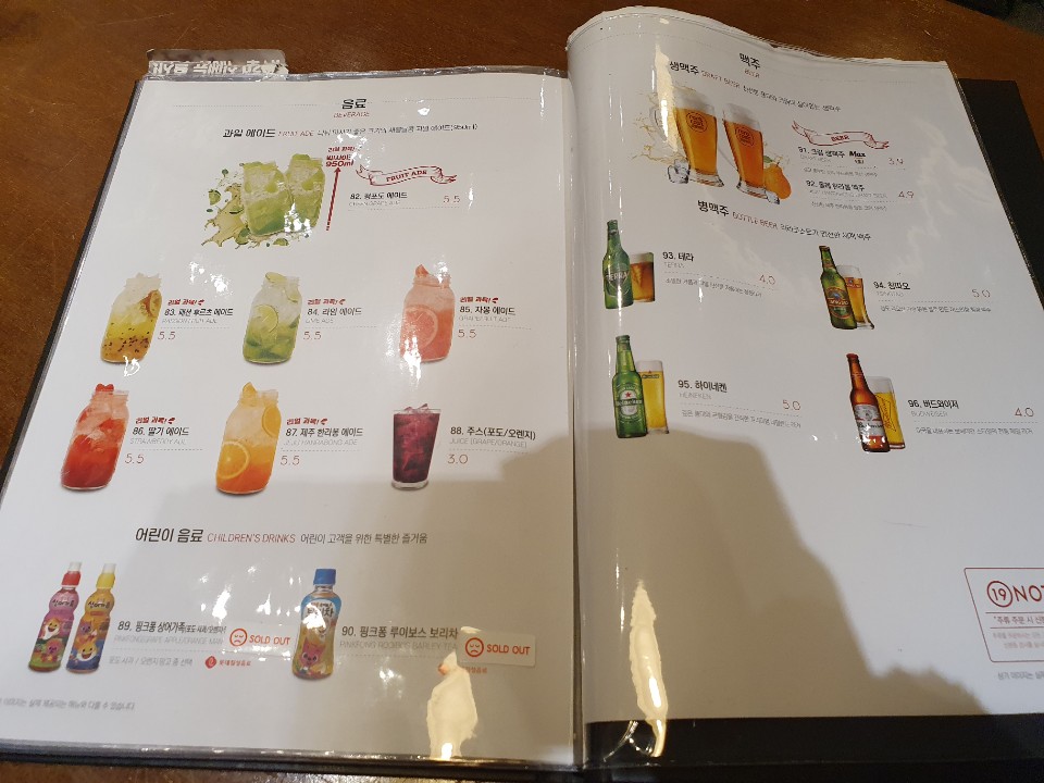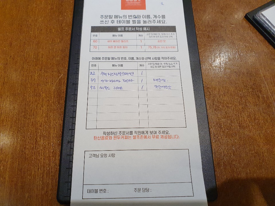메뉴판을 보고 원하는 음식의