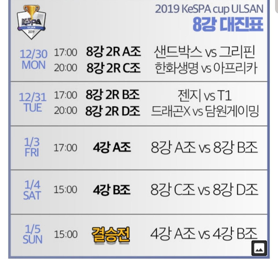 롤 2019 케스파컵 일정을 공유하겠습니다. 결승전은 1월 5일 3시에 있네요. 정말 꿀잼일 것 같습니다.